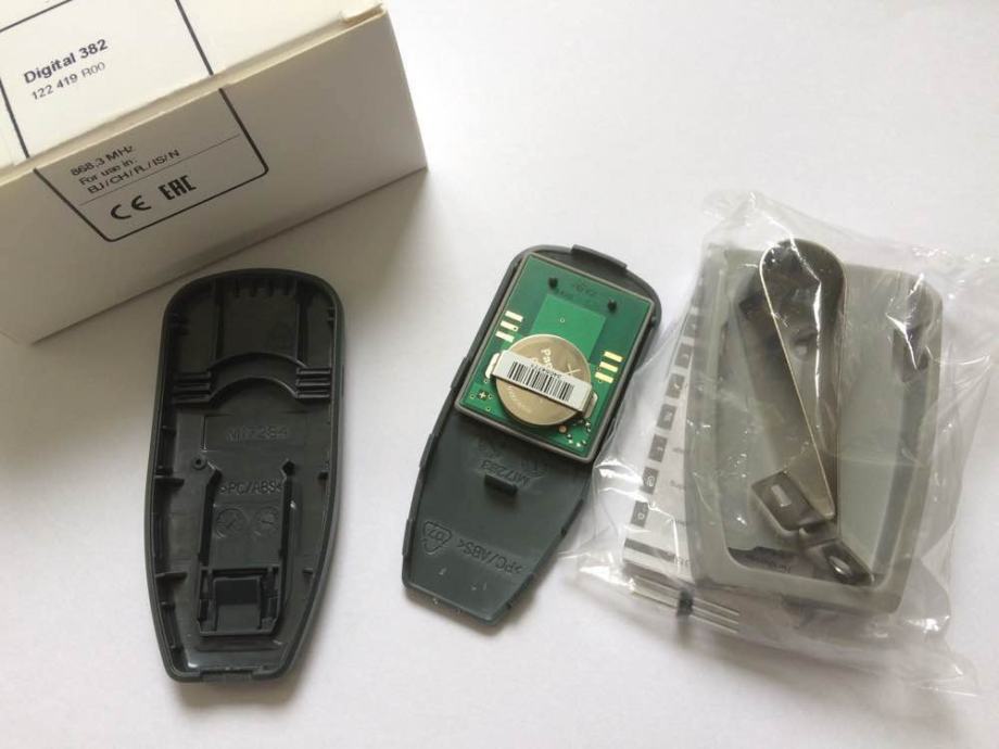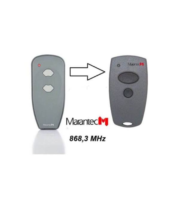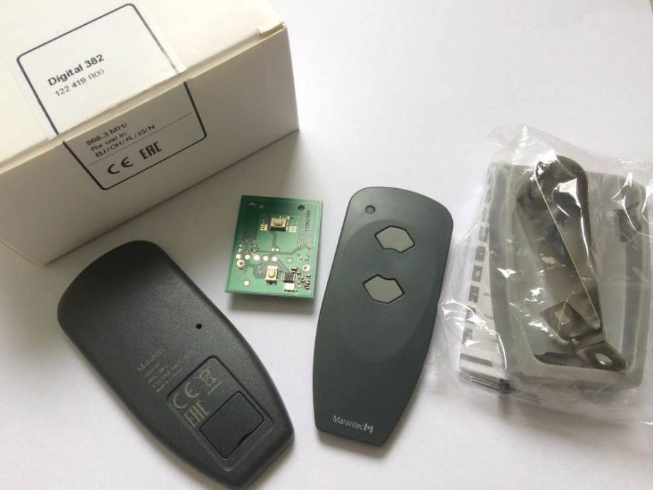 Novi zapakirani daljinski upravljač Marantec Digital 382, 2-kanalni (dvije tipke) model iz 2017. na frekvenciji od 868,3 MHz. To je nasljednik starog modela 302 na 868,3 MHz.