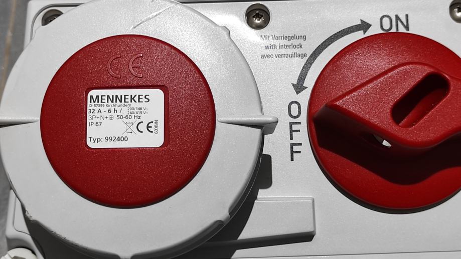 Mennekes industrijska utičnica 32A u ormariću (interlock blokada)