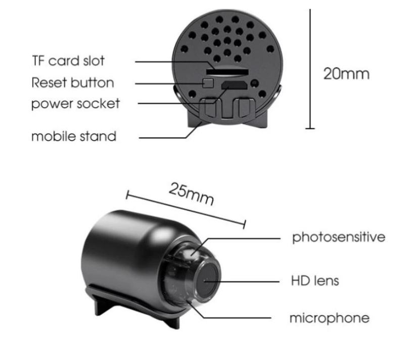 Mini kamera X5 WiFi 1080p micro SD USB 20mm