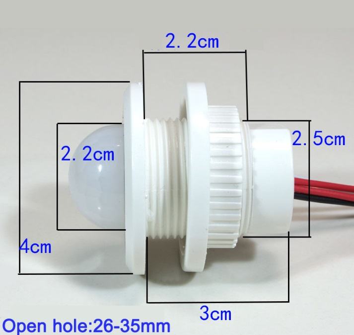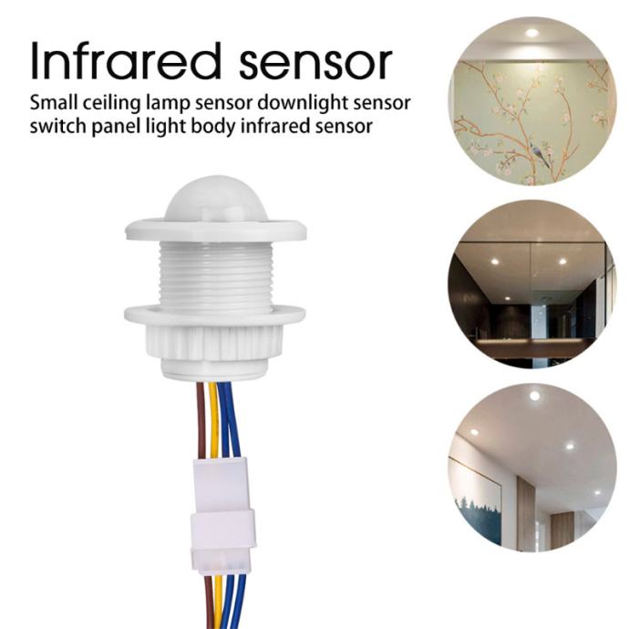 Ovaj PIR senzor služi za automatsko uključivanje LED osvjetljenja 5-24V. Čim senzor primijeti pokret čovjeka ili dio tijela (ruka, noga) aktivira se automatska sklopka koja može uključiti LED osvjetljenje (LED trake i LED žarulje 5-24V). Idealno za automatsko paljenje rasvjete u ormarima, razniim pretincima, hodnicima, stepeništu, garaži, sigurnosnim sistemima i sl. Tri vremenska tajmera. 4min., 45sec. i 3sec. U sebi ima foto otoprnik koji sprečava aktivaciju po danu. Senzor izgleda kao na prvoj slici, sa kormiranim prstenom.