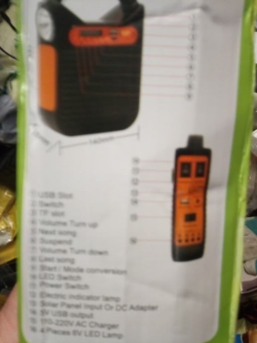 Uređaj ima punjivu bateriju 4000mAH,6v, Usb kabl s 4 kabla za punjenje mobitela,ugrađenu led lampu,radio s zvučnikom,solar panel 9V 3w i strujni punjać.Pogodno za vikendice,kampiranje bilo gdje da se nalazite gdje nema struje.