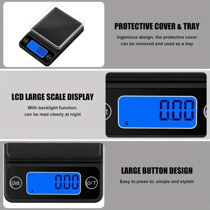 Black granit mjerna džepna vagica mjeri od 0,01gr - 500gr