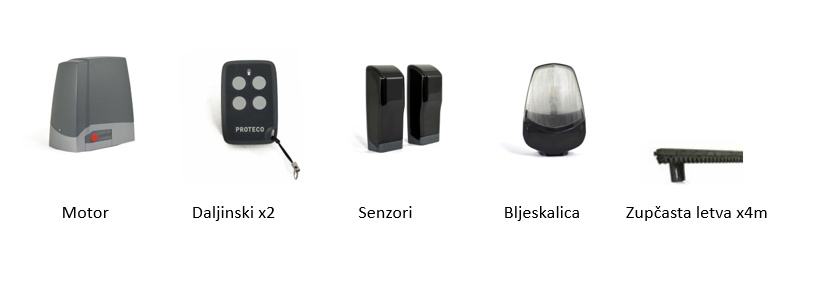 - Motor Proteco Meko 5/8 za kliznu ogradu s kontrolnom jedinicom i radio prijemnikom na 433,92MHz