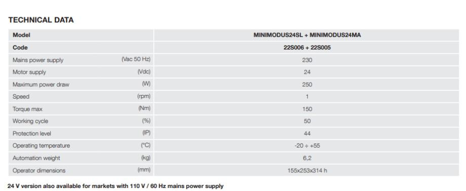 Motor za dvorišna krilna vrata MINI MODUS 24V