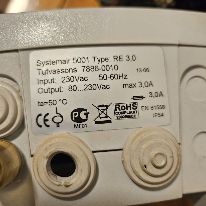 Motor Vortice lineo 100 + Systemair transformatorski regulator brzine ( za ventilacije sanitarnog cvora)