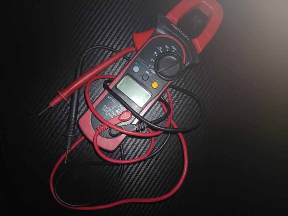 Prodajem multimetar s priloženim mjernim sondama. Radi se o kliještastom multimetru u crvenoj i crnoj boji, s digitalnim zaslonom i rotacijskim prekidačem za odabir načina mjerenja.