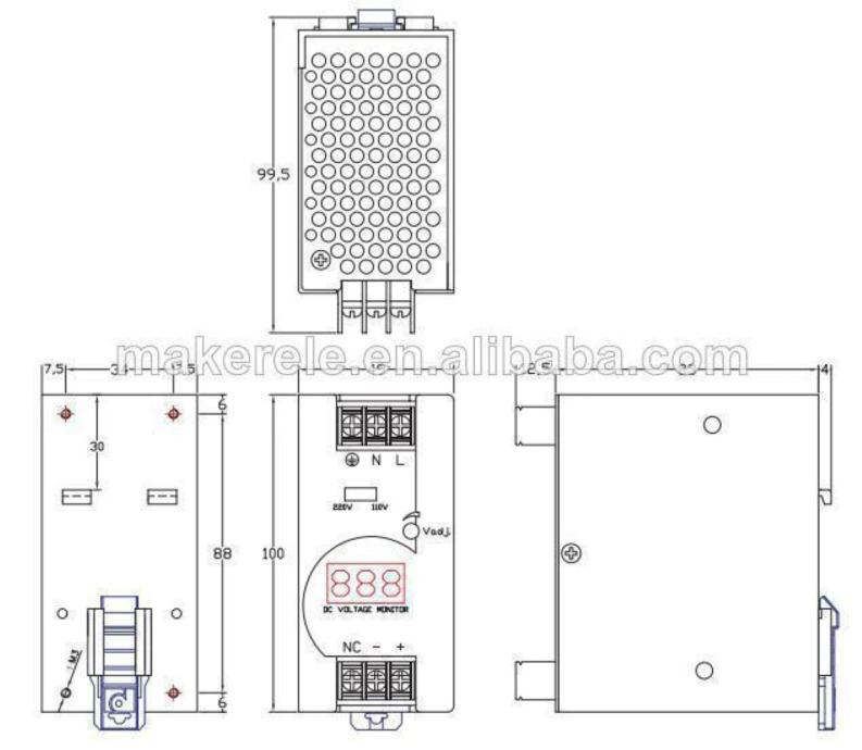 Adjustable DC voltage range 11.4~13.2V 20.5~26.5V 43.2~52.8V