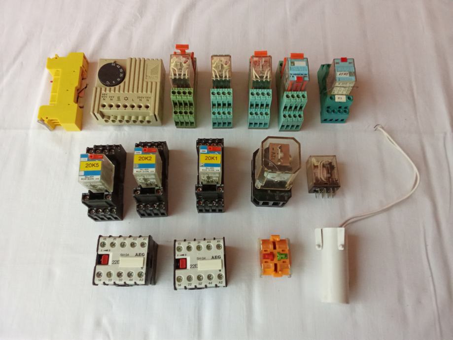 Nisam električar, a čini mi se da su većina ovih uređaja releji. Ne znam da li su ispravni, a možda nisu nikada bili ugrađeni. Fotografije priložene uz oglas prikazuju ovdje oglašene predmete. Cijena je fiksna, tj. 10 € za sve predmete vidljive na fotografijama.