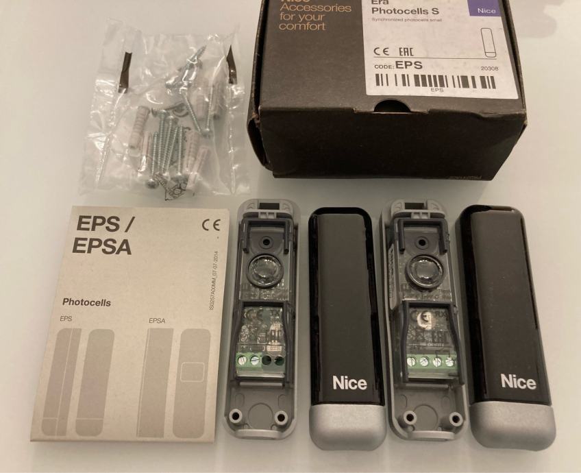 Prodajem orginalne nove zapakirane iznimno male (tanke) NICE EPS fotoćelice (par) - pomoćni uređaj za sigurnost, bitan u svim garažnim vratima ili vratima s automatizacijom. Nice eps fotoćelije zamjenjuje sljedeće fotoćelije oznake: