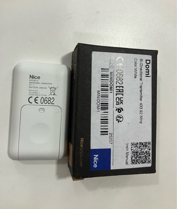 Prodajem novi model zapakirani Nice BIDI Awning prijemnik (koji zamjenjuje stari oznake Nice TT1N prijemnik) i za njega Era Minway jednokanalne Nice MW1 (MiniDOMI1), dvokanalne MW2 ili trokanalne MW3 daljinske upravljače sa stalkom za tende, rolete ili rolo vrata frekvencije 433,92MHz.
