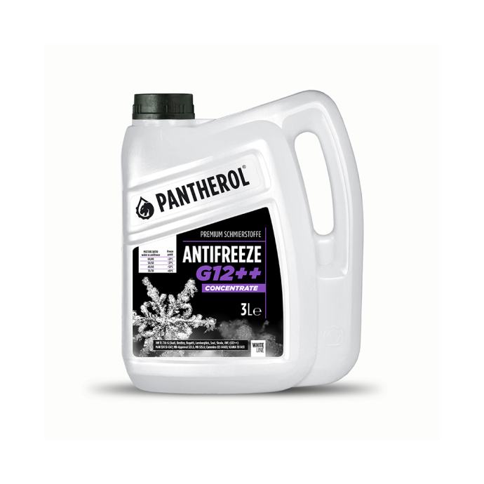 Antifriz Pantherol G12 ++ posebno je sredstvo za zaštitu od zaleđivanja za rad hladnjaka u ljetnim i zimskim uvjetima s trajnom zaštitom od zaleđivanja i hrđe (za uporabu u svim godišnjim dobima). Sadrži vrhunsku zaštitu od korozije i hrđe (s pojačanom zaštitom od korozije). Ne sadrži nitride, amine i fosfate. U skladu je s trenutnim zahtjevima brojnih OEM-ova i izvanredno je pojačan organiskim i silikatskim tehnologijama (SI-OAT rashladna tekućina). Specifikacije: