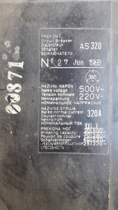 Prodajem navedeni prekidač. Karakteristike se nalaze na fotografiji.