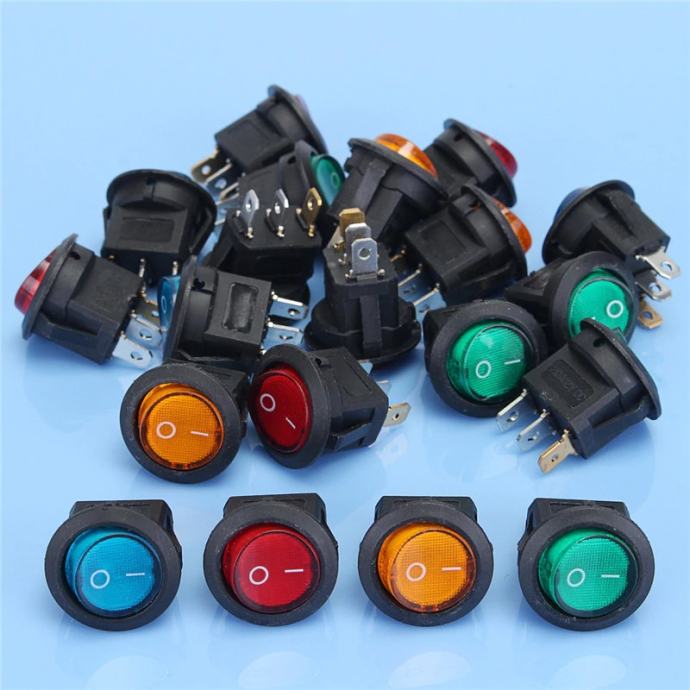 2. Prekidač 12V-20A 3 pina sa svjetlom preklopni prekidač SPST 30 x 23mm (visina x diametar) 8kn/ komad