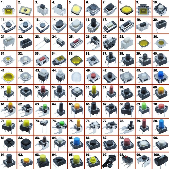 mikroprekidači, power prekidači i razni SMD prekidači za elektroniku, prekidač za laptop, prekidač za klavijaturu, prekidač za auto, prekidač za razne tipkovnice, matične ploče i ostalo u više varijanti