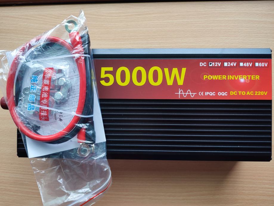 Pretvarač napona sa 12V na 220V 25000/5000W sa spojnim kablovima i klemama.