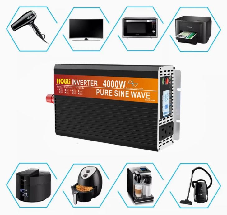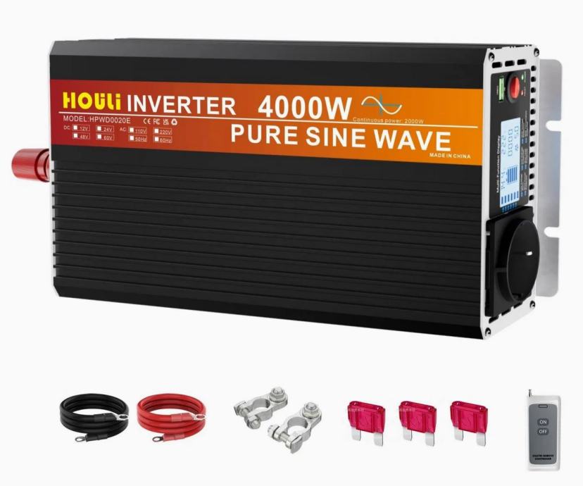 Pretvarač napona Inverter sa DC 12V na AC 220V vršne snage 4000W, trajne snage 2000W, čisti sinus sa kablovima, klemama, osiguraćima i daljinskim upravljačem