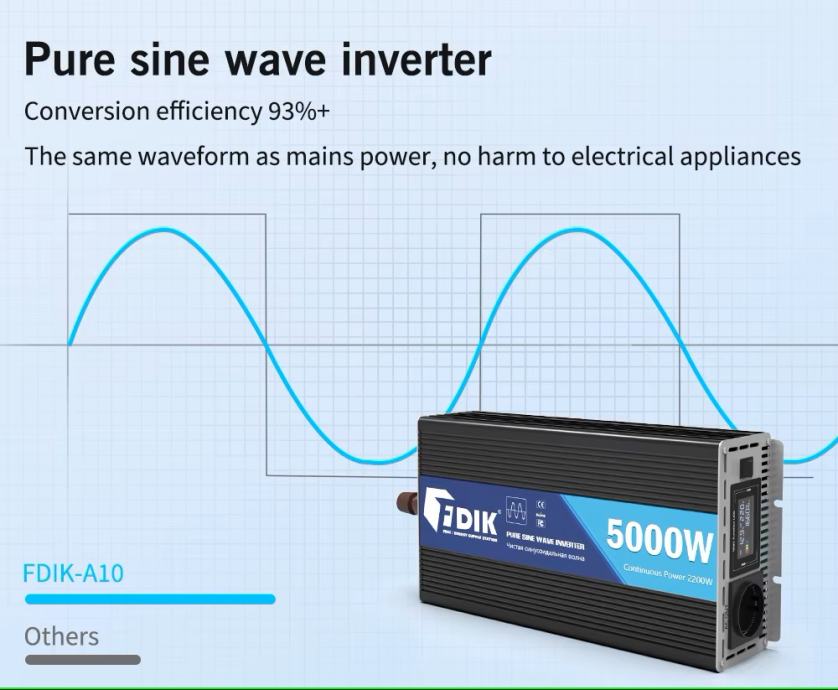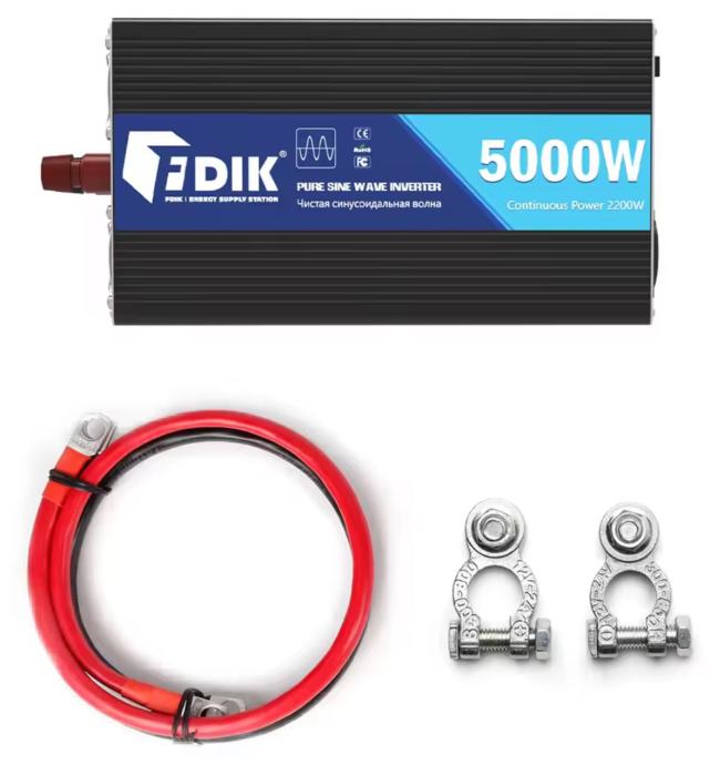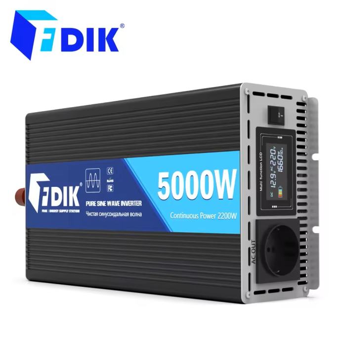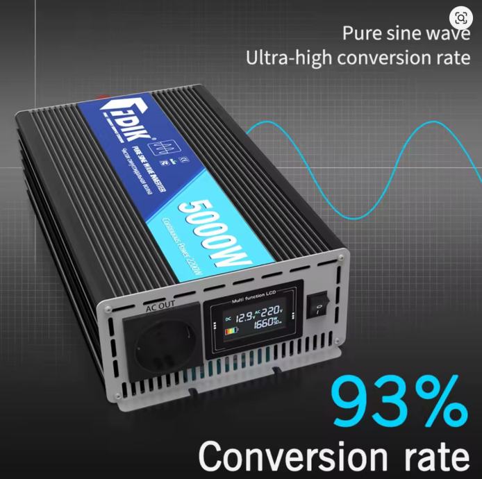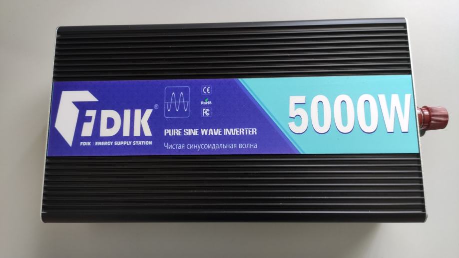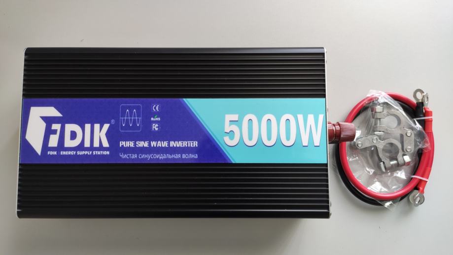 Pretvarač napona Inverter sa DC 12V na AC 220V vršne snage 5000W, trajne snage 2500W, čisti sinus.