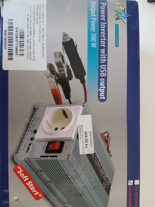 Prodajem novi pretvarac struje s 24V na 220V. Kupljen greskom. Auto prikljucak i prikljucak s klemama.