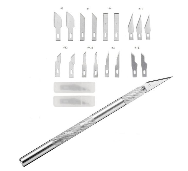 9. Skalpel sa 18 noževa Ručica noža 12cm, za graviranje, kožarstvo, elektroniku, pcb i drugo 40kn