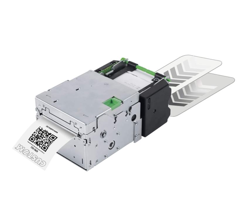 Termalni kiosk ticket printer za papir 40-86mm sa RS232, USB i LAN spajanjem. Mogućnost printanja na dvije različite vrste papira. Čitanja RFID i barcode kao opcija.