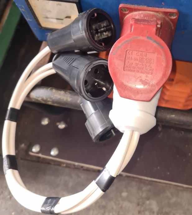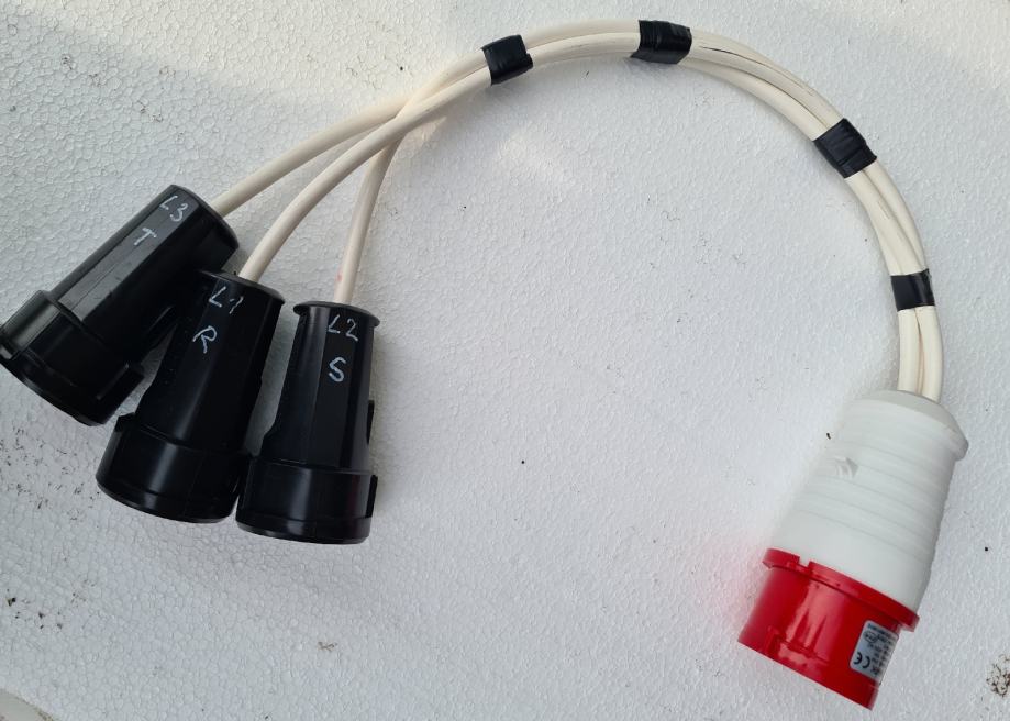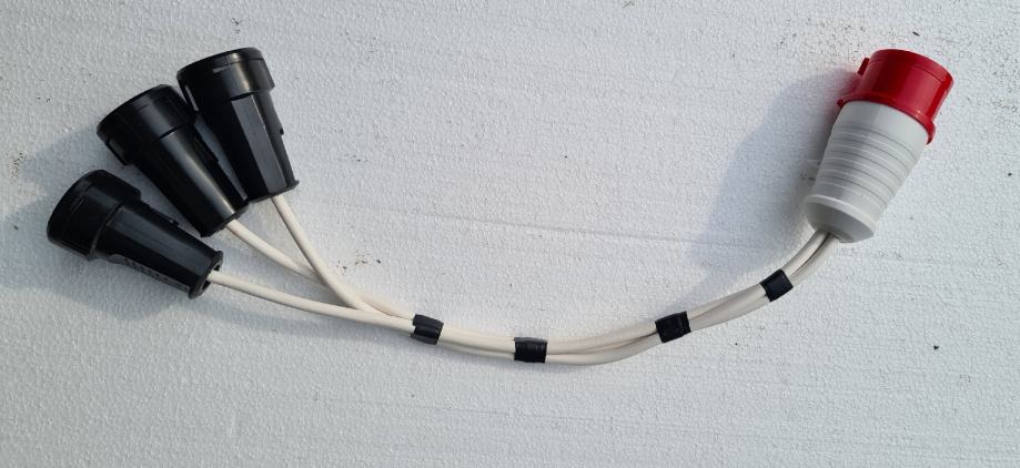 Produžni kabel trofazni utikač 16A, razdijeljena u tri monofazne utičnice za 220V, pogodno za sva mjesta bez monofazne utičnice,