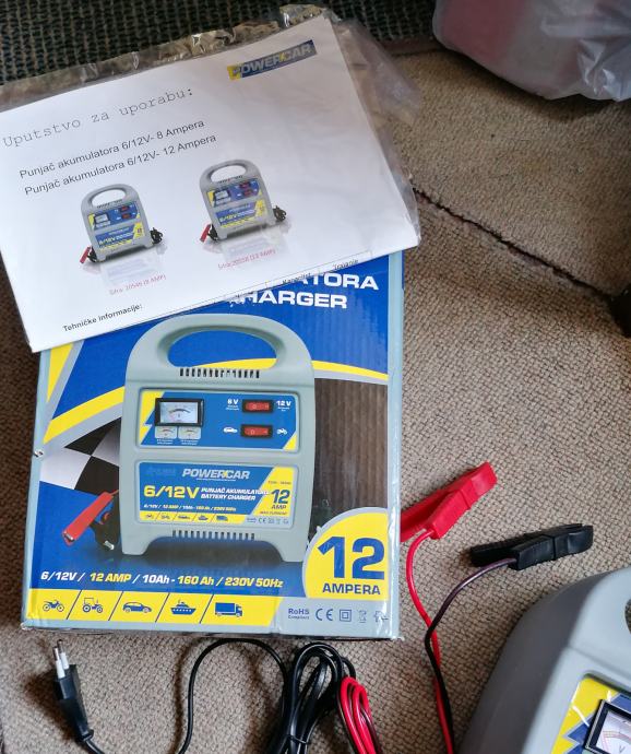 Rabljeni punjač akumulatora 12A u odličnom stanju, izmjenjivi osigurač 15 A.