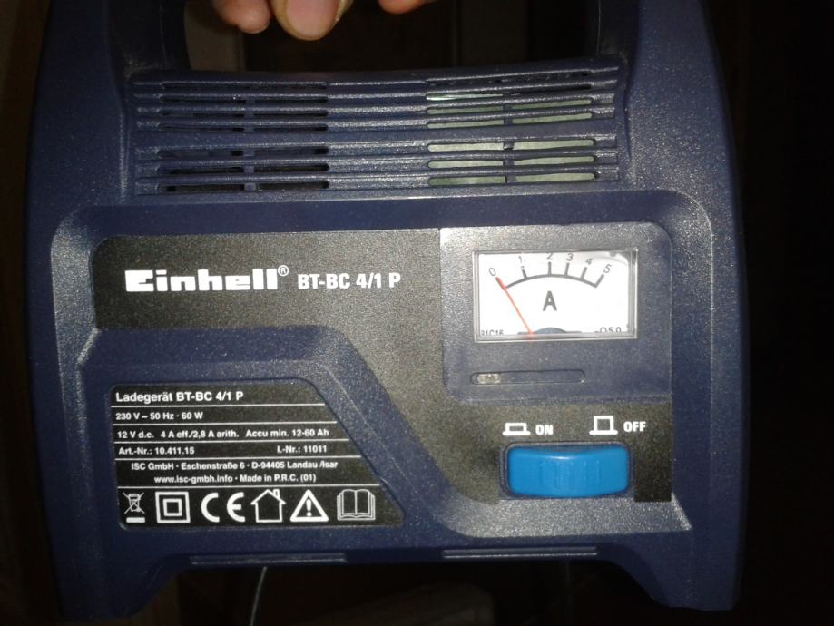 EINHELL JE VRLO KVALITETAN I POUZDAN PROIZVOĐAČ A PUNJAČ JE VRLO PRAKTIČAN I KOMPAKTNIH DIMENZIJA SA RUČKOM ZA DRŽANJE. KORIŠTEN JE SVEGA NEKOLIKO PUTA TE GA PRODAJEM JER SAM NABAVIO NOVI S DODATNIM FUNKCIJAMA PA JE OVAJ VIŠAK, NO PRAKTIČKI JE NOV KO ŠTO SE VIDI IZ FOTOGRAFIJA.iMA SIGURNOSNI OTPORNIK (OSIGURAČ)NA DNU TE NIJE POTREBNA POBUDA ZA PUNJENJE TJ NAPAJANJE PO UKLJUČENJU U 220V.OSTALI DETALJI NA UPIT, DIMENZIJE OTPRILIKE A4 BILJEŽNICE.RADI 100% U ČETVRTOJ FOTKI SLIKANE U MRAKU VIDI SE ZELENO SVJETLO KAO POKAZATELJ ISPRAVNOSTI KOD UKLJUČENJA!