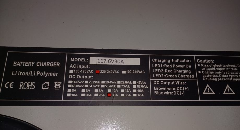 Punjač Li iron / Li polymer, 117.6V, 30A.