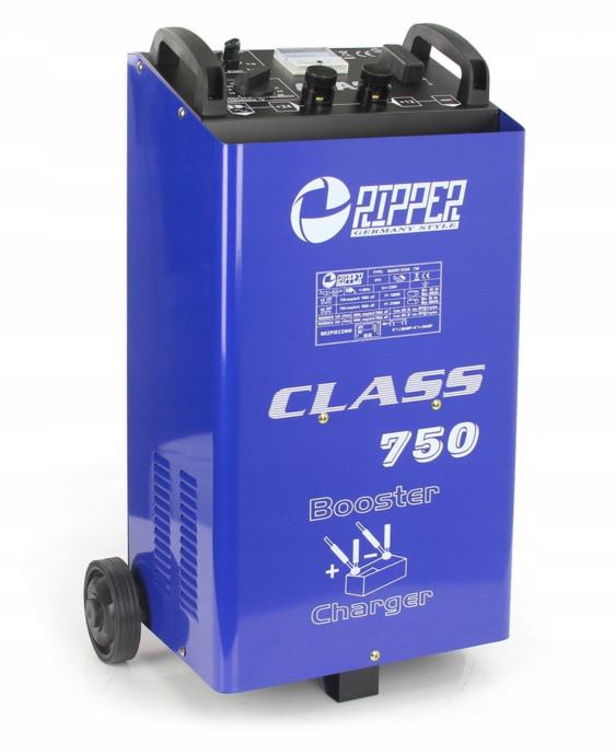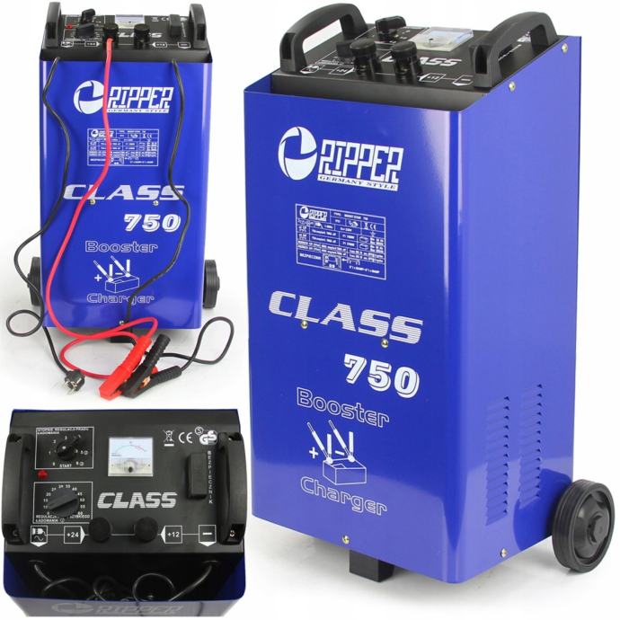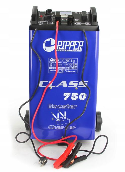 Startni uređaj serije 750 renomirane marke RIPPER dizajniran je za pomoć pri pokretanju i punjenju olovnih akumulatora od 12 V ili 24 V koji se koriste u kamionima i građevinskim strojevima, između ostalog, kao i za pokretanje motora s unutarnjim izgaranjem u slučaju potpuno ispražnjenog akumulatora ili vrlo niskih temperatura okoline.