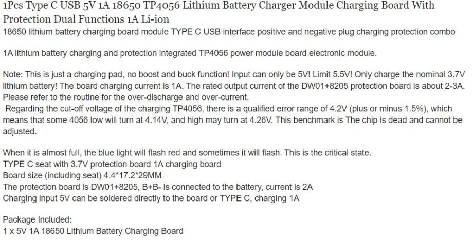 Punjač TP4056 USB ili USB-C Lithium Battery Charging Protection Board LED Display 18650 modul