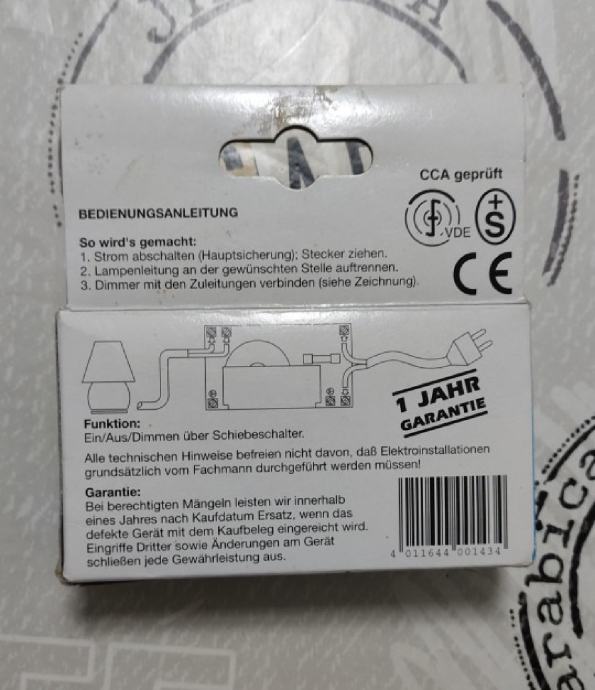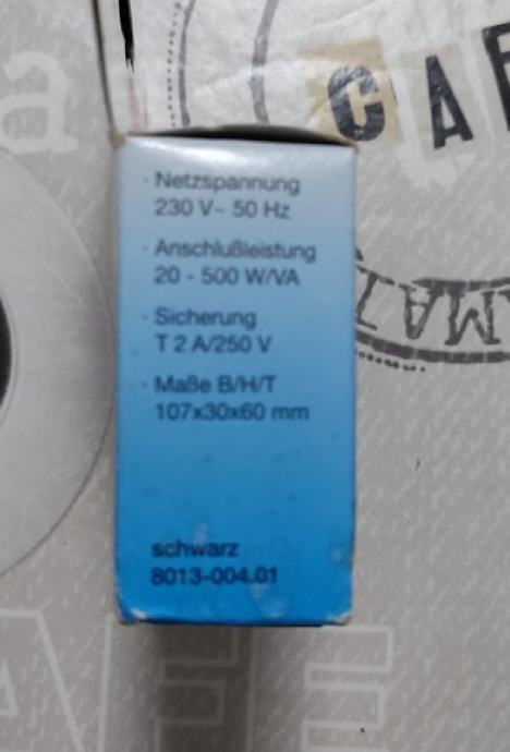 230V ~50Hz snage 20-500W, osigurač T2A/250V.