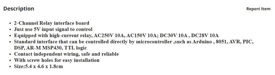 - releji: 10A 30v DC, 10A 250v AC