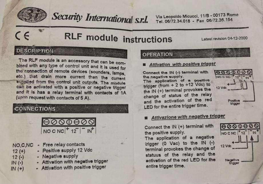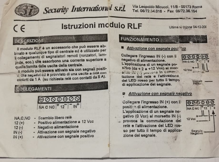 Novi modul RFL. . Proizvodnja Italija : 3i security International