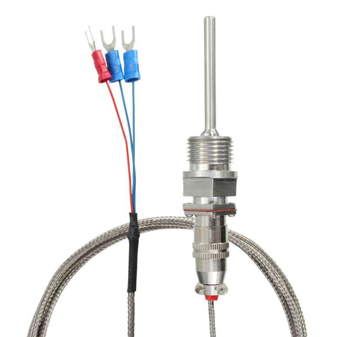 RTD PT100 Sonda -50 do 350C duljine kabela od 2m sa navojem od 1/2". Pogodna za korištenje na raznim PID i običnim termostatima kao što su: REX C100 c700 C900, Eliwelli, Ewelly, XMT, Immit, Omron i drugi koji za rad koristite PT-100 sonde. Sonda je vodotporna, izrađena od nehrđajućeg čelika. Izgled i dimenzije prikazane su na slikama.