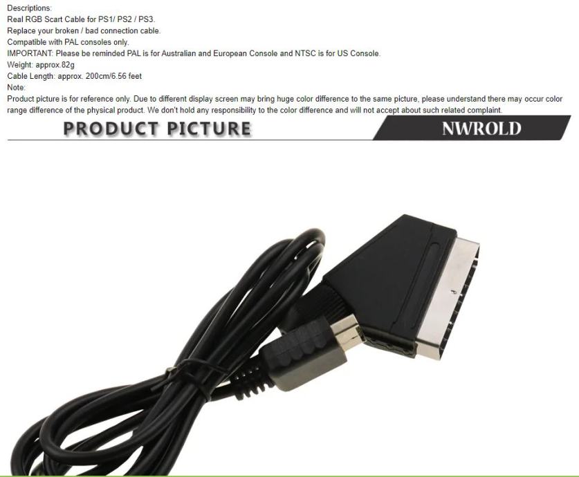 SCART RGB kabel Playstatation PS1, PS2, PS3 dužine 1.8m