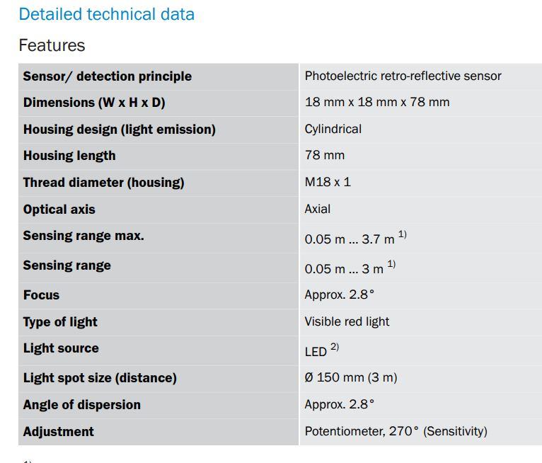 RETRO-REFLECTIVE SENSOR 0,05-3m,