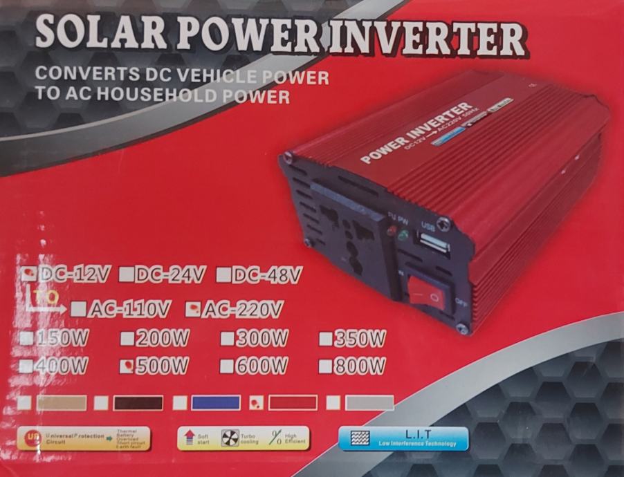 Priključuje se jednostavno u auto na mjesto autoupaljača ili kabel štipaljkama direktno na akumulator. Ima veliku snagu od 500W što je dovoljno za napajanje laptopa, mobitele, fotoaparate, kamere, rasvjete, TV-a i ostalih uređaja do 500W snage.