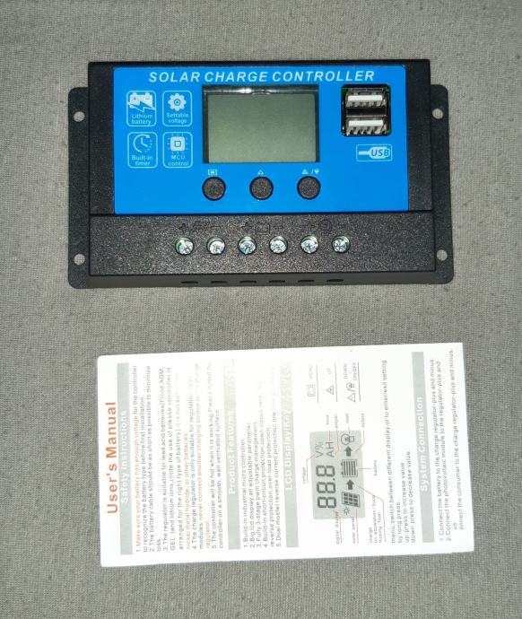 Pretvarač solarne energije, 60 A, (12V/24V, 2 USB 5V)