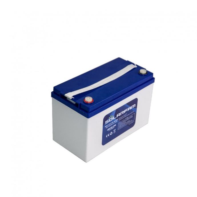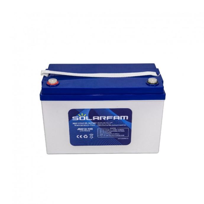 Solarna baterija JPC100 12V 100Ah olovno-ugljična, gel olovno-ugljična baterija razvijena je novom tehnologijom kombinacije olova i nano karbonskih vlakana zapečaćenih u negativnoj elektrodi. Zahvaljujući tome postiže vrlo visok broj ciklusa punjenja i pražnjenja (do 3600 ciklusa pri 40% DoD - dubina pražnjenja).