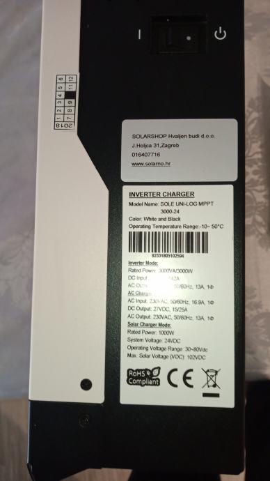 Prodajem ispravan inverter korišten godinu i pola. Korišten je samo za vikendicu, održavao je frižider a za vikend svijetla, tv, radio. Radi na AGM ili olovne kiselinske akumulatroe koje sam i ja koristio 2x12 230ah dakle 24V. Bez akumulatroa ne može raditi. Za solarne panele sam koristio 6x300w koji su bili spojeni po dva u seriju pa serije na paralelno. Inverter ima snagu od 3000w izlaz 230v. Bio je na suhom i toplom mjestu, vrlo je pouzdan. Potrebno je znalac spoji da se ne bi zamijenili polovi i da zna postaviti pravu konfiguraciju panela. Slike su realne, te također šaljem i video da inverter radi. kupljen je u sloarno.hr u Varaždinu i koštao je 4250kn. Ja ga prodajem za 2400 kn!