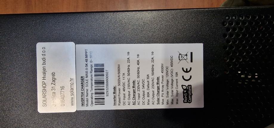 Sole MAX MPPT 5KWA-48V 80 A PUNJAČModel SOLE UNI 5000