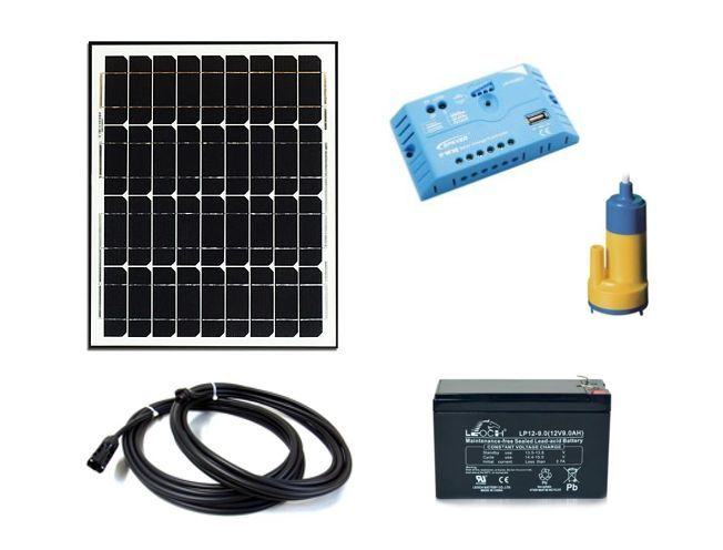 Solarni komplet sa mono solarnim modolum 30W, regulaciju 12V/5A in svinčenu agm bateriju 9Ah solarni kablovi sa MC4. Vodna pumpa Barwing DC12 20W ima intervalno obratovanje 25-30min onda se mora odmoriti 30min, novo račun i garancija!
