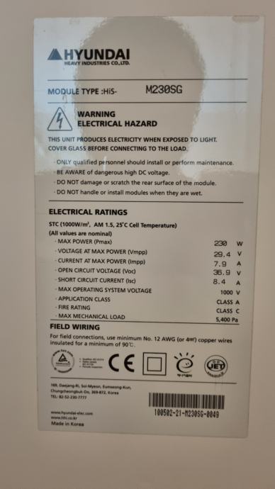 Prodajem solarni panel HYUNDAI M23BSG, 230W, "24V"