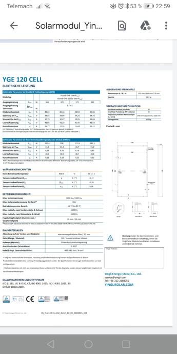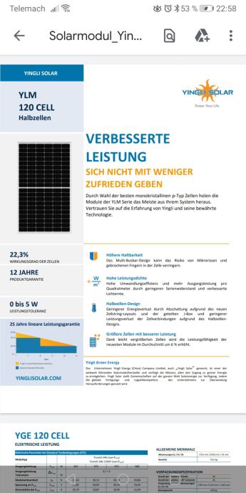 Profesionalni solarni paneli za SOLARNE elektrane YINGLI SOLAR ,YL375d-34d ,120 čelija 1/2l. ,dimenzije 1755x1038x30 mm ,paneli su najnovija PERC tehnologija ,svaki solarni panel ima svoj broj i test (flasch test) ,sa pozitivnom tolerancijom + 5wata ,obavezan račun R1, Cijena za 2-5 kw= 1500,00 kn/kom s pdv , za samo jedan komad 1600,00 kn/kom s pdv. Za veče količine kontaktirati za cijenu. Vrlo pogodni za krovove kuča sa malo mjesta-a veču snagu elektrane.