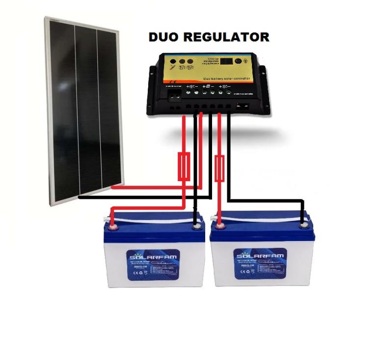 DUO regulator omogoča sočasno polnjenje porabniškega akumulatorja in vzdrževanje zagonskega akumulatorja. Tako ste lahko sigurni, da bo zagonska baterija vedno zagnala avtodom, porabniški akumulator pa bo zadostno napolnjen.