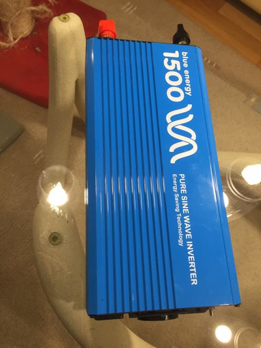 Prodajem kratkotrajno korišten SOLE BLUE ENERGY Inverter solidne konstrukcije (izašao je iz garantnog roka), PUNI SINUS s DC napona 12V na AC 230V (jedna CRO utičnica), snage 1.000 W kontinuirano, maksimalna kontinuirana snaga 1.500W i vršne snage do 2.000 W u trajanju 10 milisekundi. Uređaj je izašao iz garantnog roka.