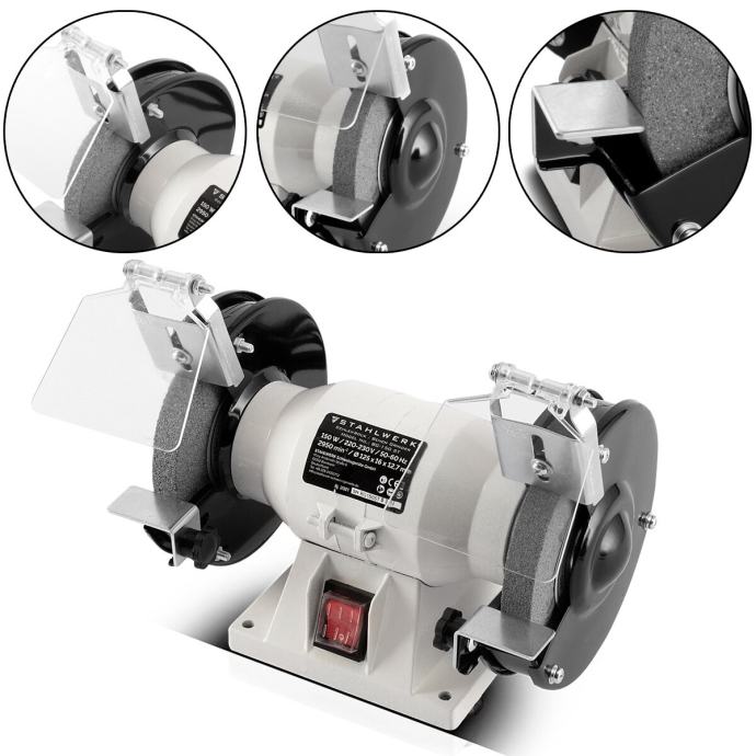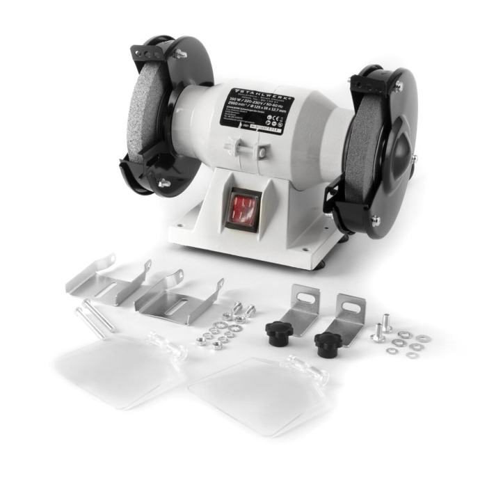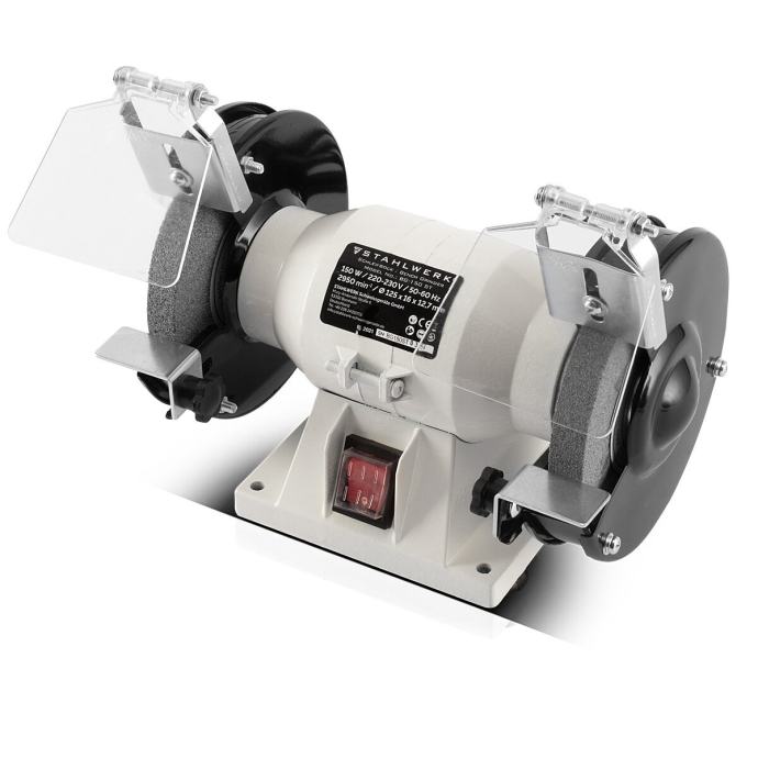 STAHLWERK BG-150 ST brusilica / dvostruka stolna brusilica sa 150 W i 2.950 okretaja u minuti pogodna za brušenje, oštrenje, poliranje, skidanje ivica izradaka od metala, drva, akrila ili plastike.