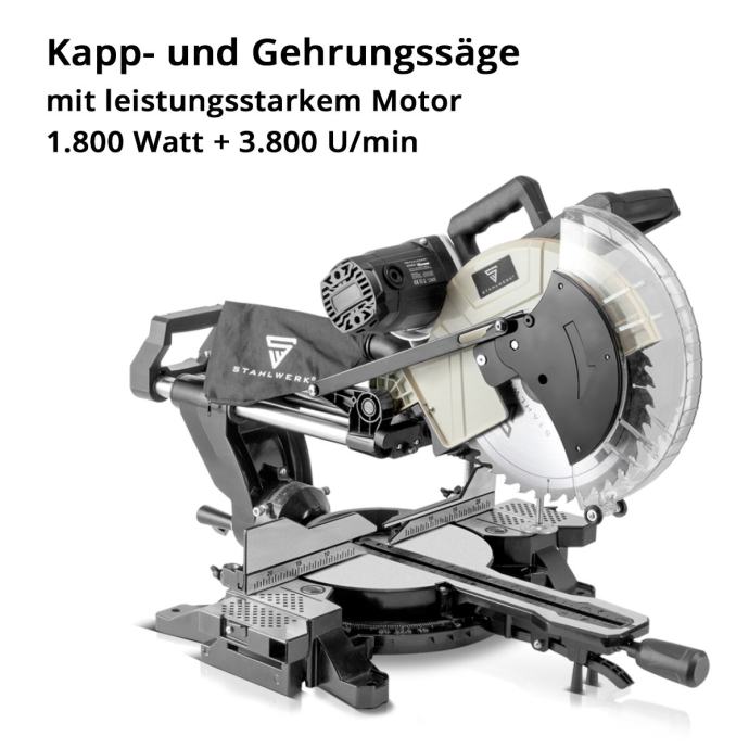 Najjača u svojoj klasi: STAHLWERK CPM-305 ST profesionalna poprečna, vučna i kutna pila idealna je za rezanje drva, obojenih metala i kompozitnih materijala. Glatki rad motora vučne pile impresionira snagom od 1800 W pri 3800 o/min. S velikim rasponom podešavanja od -45° do +45° stupnjeva i kutom nagiba od -45° do +45° stupnjeva, kružna pila nudi maksimalnu fleksibilnost za sve radove piljenja. Zahvaljujući jasnoj ljestvici kutova, željeni kut zakošenja može se brzo postaviti. Točke rešetke pojednostavljuju poravnavanje lista pile. Preklopni laser osigurava najvišu razinu preciznosti pri piljenju zahvaljujući točnom prikazu linije rezanja i uvijek osigurava savršen uzorak rezanja. Zahvaljujući širokoj kontaktnoj površini, podesivom graničnom šinom i praktičnim steznim uređajem, čak i veći obradaci mogu se obraditi bez napora. Proširljivi bočni dijelovi nude produženu potpornu površinu za duže izratke. Osim toga, opremljeni su graničnikom na šarkama s obje strane. Kompaktan dizajn vučne pile i robusno kućište s protukliznim gumenim nožicama nude maksimalnu stabilnost. Integrirani sigurnosni prekidač i motorna kočnica osiguravaju dodatnu sigurnost. Pila za rezanje i zakutavanje ima unaprijed izbušene montažne rupe za jednostavno pričvršćivanje na radnu ploču ili postolje za pilu. Pila za rezanje može raditi s vrećom za sakupljanje strugotine koja je uključena u opseg isporuke ili s vanjskim sustavom za usisavanje. Uz težinu od samo 20 kg i praktičnu transportnu ručku, pila za rezanje se može koristiti u pokretu i jednostavna je za transport. Savršena pila za zahtjevnog majstora. Idealno za industriju, zanate, radionice.