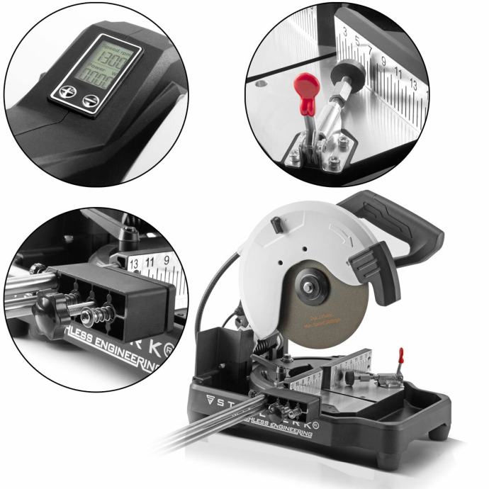 Pila za rezanje metala STAHLWERK MT-20 ST univerzalna je stacionarna brusilica za rezanje s tehnologijom bez četkica. Tehnologija bez četkica omogućuje rad motora bez trošenja. Stacionarni rezač metala ima snagu od 2000 W i savršen je alat za precizno rezanje i rezanje. Maksimalna brzina je 2.000 okretaja u minuti. S maksimalnom veličinom oštrice od 235 mm, rezni nož bez četkica idealan je za rezanje, odvajanje i rezanje čelika, obojenih metala, željeza i profila od lijevanog željeza na duljinu. Brzina se može podesiti u 3 raspona brzina od 1.000 do 1.500 do 2.000 okretaja u minuti. Postavljene radne vrijednosti mogu se u svakom trenutku pratiti na preglednom LCD zaslonu. Uz odgovarajuću reznu ploču, rezna pila se može koristiti i za rezanje kamena ili pločica zahvaljujući integriranom vodenom hlađenju.