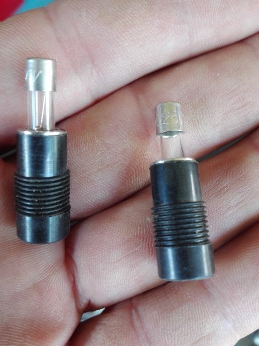 Stakleni osigurači. Svi su ispravni. Oznake: najdeblji: c5w philips 24 v 5w; manji osigurači : F2,5AL 250v, ona dva u crnoj plastici: F 500 L 250v. Sve zajedno košta 13€. Na sms nemogu odgovoriti, najbolje bi bilo da me nazovete 099 687 5657 ili pošaljete poruku preko Njuškala!